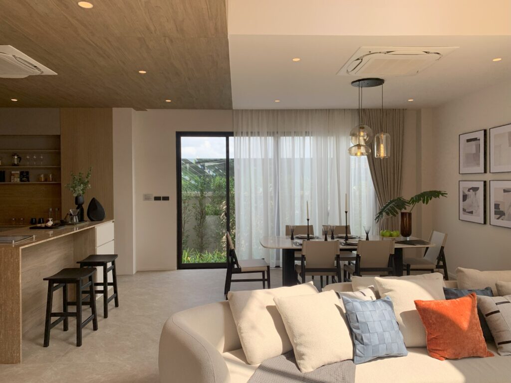 การออกแบบดีไซน์แสดงออกถึงความเป็นธรรมชาติของโครงการที่มีจุดเด่น คือ เพดานบ้านสูง (Double Volume) บริเวณ Living Area ทุกหลัง อากาศหมุนเวียน ถ่ายเทสะดวก ให้ความรู้สึกปลอดโปร่ง โล่งสบาย กว้างขวาง สว่าง สง่างาม และโดดเด่น โถสุขภัณฑ์แบบ Smart Toilet ที่จอดรถกว้างสามารถจอดได้สะดวก รับประกันโครงสร้างบ้าน 10 ปี